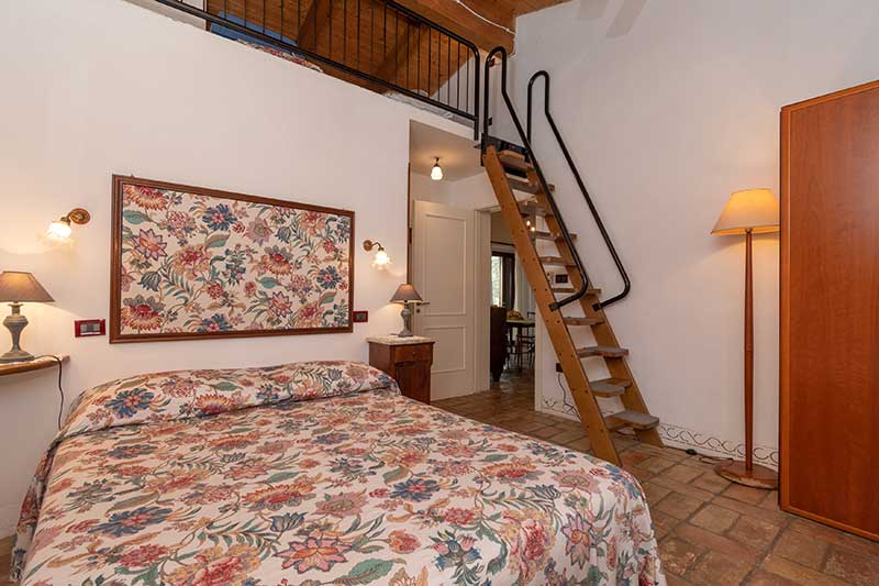 L'appartamento è composto da un soggiorno-cucina (cucina completamente attrezzata), un bagno con doccia e una camera con un letto matrimoniale e 2 letti singoli nel soppalco.
