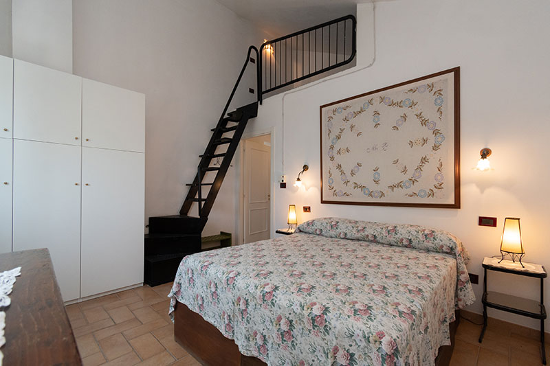 L'appartamento è composto da un soggiorno-cucina (cucina completamente attrezzata), un bagno con doccia, una camera con letto matrimoniale e un letto singolo nel soppalco.