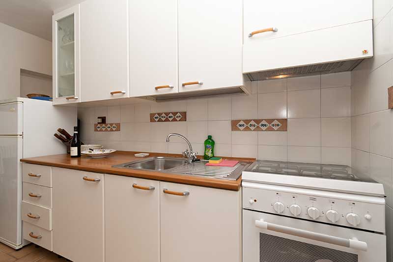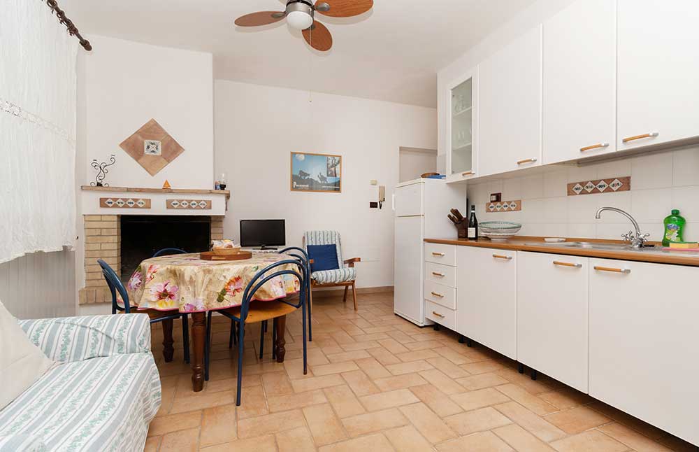 L'appartamento è composto da un soggiorno-cucina (cucina completamente attrezzata), un bagno con doccia e una camera con un letto matrimoniale e un letto a castello.